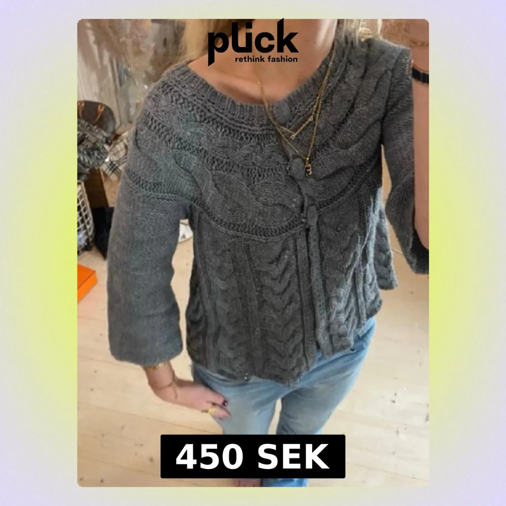 Grå kabelstickad kofta med knytband
