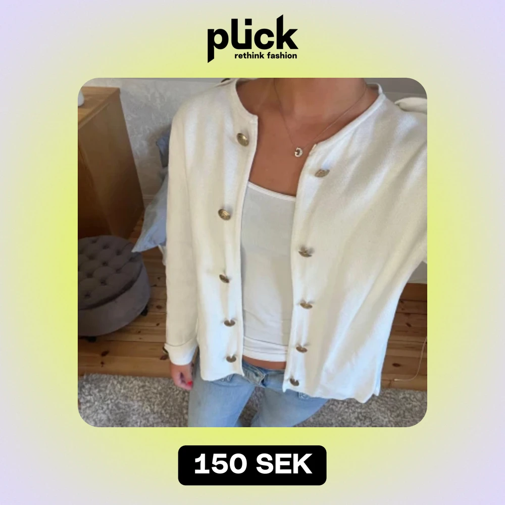 Supernajs vit kofta med guld knappar! Storlek xs men skulle säga att den passar s och m med. Pris kan diskuteras!🧸💕