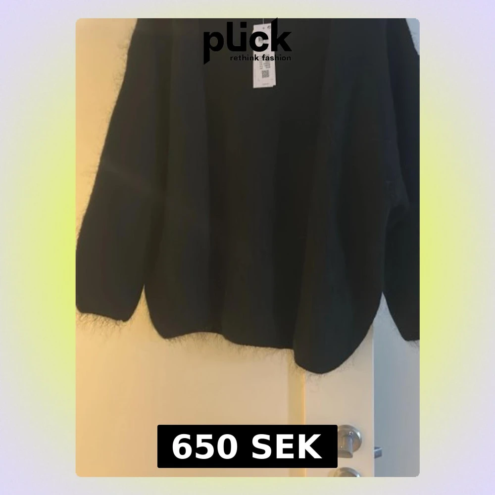 Mysig svart kofta från Lindex med öppen front och lång ärm. Koftan är fluffig och har en avslappnad passform, perfekt att slänga över en t-shirt eller topp. Enkel och stilren design som passar till det mesta.