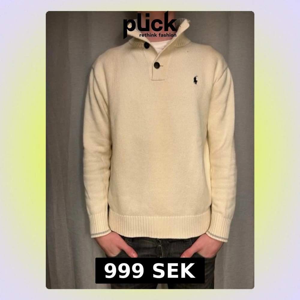 Säljer en stickad beige/krämig polo ralph lauren tröja. Storleken i tröjan är S vilket den även sitter som. Modellen på bilderna är 183 o väger ca 70 kg. Skriv vid minsta fundering.