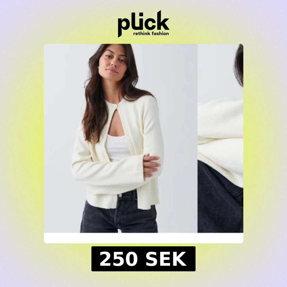Fin vit/ljus beige kofta med knapp, liten fläck men inget som syns eller läggs märke till när man har på sig den. Bra skick!