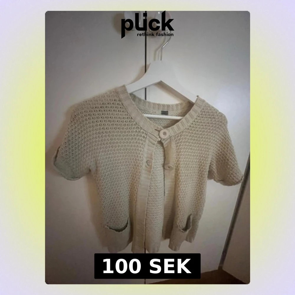 Jätte söt kortärmad beige kofta med två framfickor och stora dekorativa knappar. Passar bra på mig med storlek XS/S