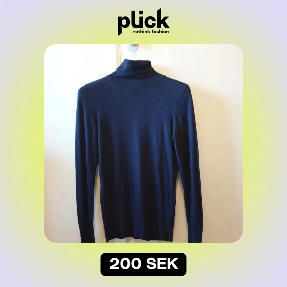 Säljer en stilren mörkblå polotröja med långa ärmar och snygga guldknappar längs ärmsluten. Tröjan håller en även varm. Oanvänd, endast testad.