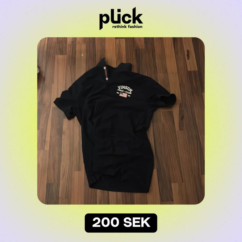 Säljer en snygg svart pikétröja från Vinson Polo Club. Den har en klassisk design med knappar och ett broderat märke på bröstet. Perfekt för en avslappnad men stilren look. Passar bra till både vardag och fest!