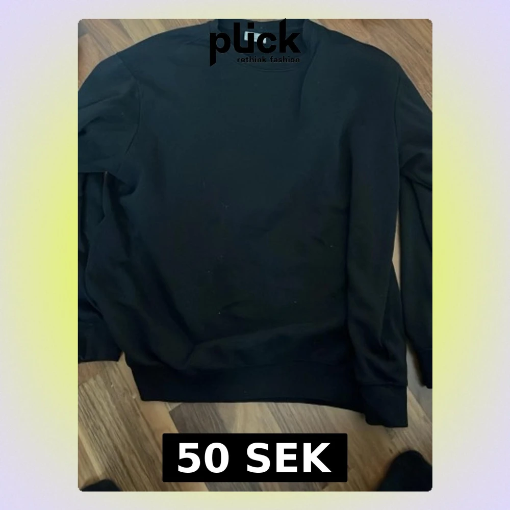 En enkel svart sweatshirt med rund halsringning och långa ärmar. Tröjan har ribbade muddar vid ärmslut och nederkant, perfekt för en avslappnad och stilren look. Passar till det mesta och är ett måste i garderoben.