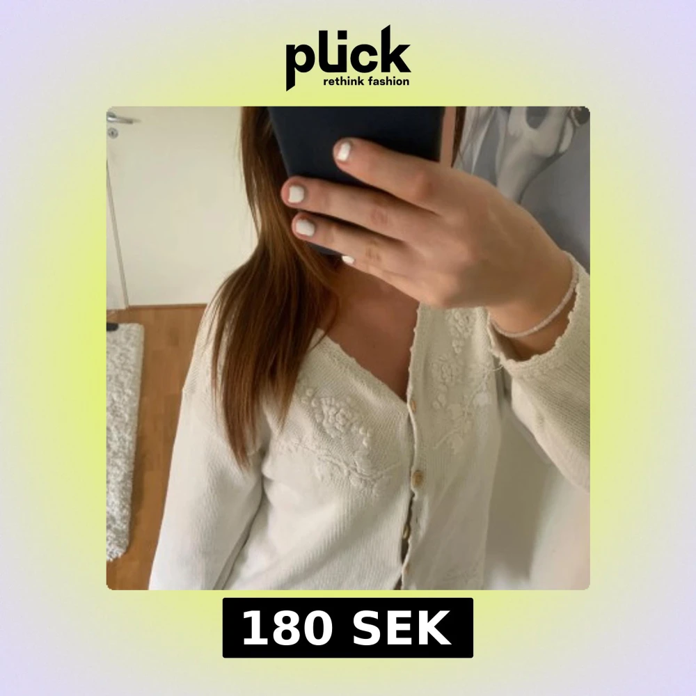 Säljer en söt vit kofta med broderade blommor framtill. Koftan har långa ärmar och knappar i trälook. Perfekt för en stilren och romantisk look.