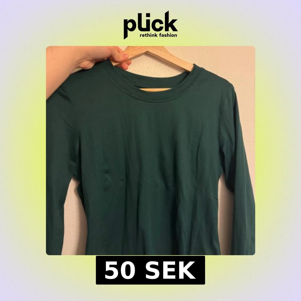En enkel och stilren mörkgrön långärmad topp med rund halsringning. Perfekt att matcha med jeans eller kjol för en clean look. Mjuk och skön mot huden. I storlek L men liten i storlek