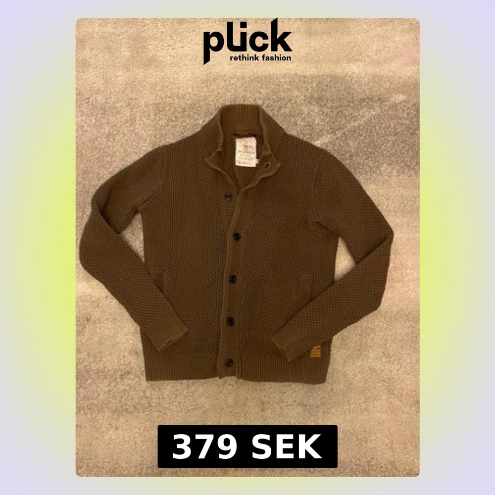Säljer en mörkgrön stickad kofta från Dstrezzed med grov struktur, ståkrage och knäppning med svarta knappar. Två fickor framtill och ribbade muddar vid ärmslut och nederkant. Koftan är i L men passar M. Perfekt för alla årstider. Vid funderingar, fråga på!