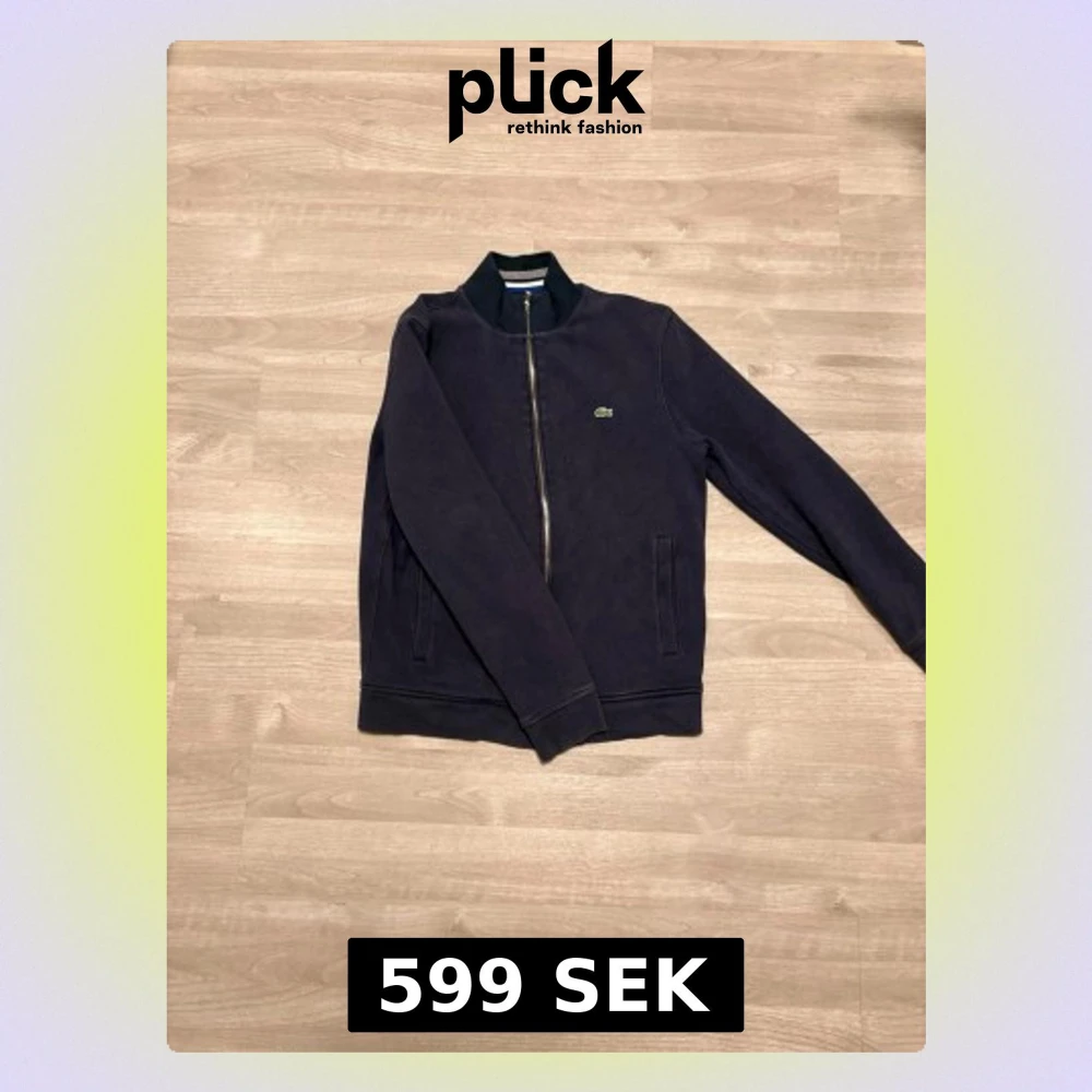 Säljer en marinblå ziptröja från Lacoste med klassisk ståkrage och silverfärgad dragkedja. Tröjan har lång ärm, två fickor framtill och den ikoniska gröna krokodilloggan på bröstet. Skön passform och perfekt till lager på lager under höst och vår.