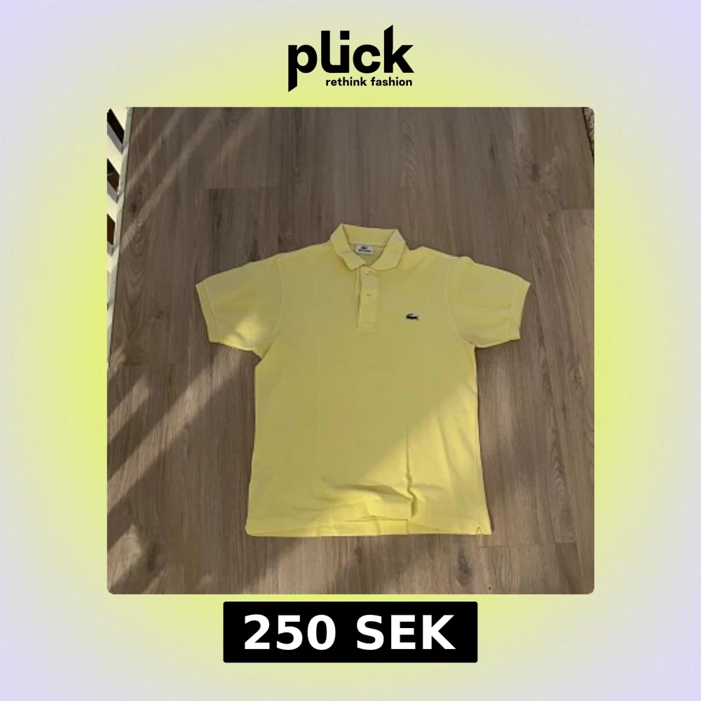 Säljer en klassisk gul pikétröja från Lacoste med den ikoniska krokodilloggan på bröstet. Tröjan har korta ärmar och en traditionell krage med knappar. Perfekt för en stilren och avslappnad look.