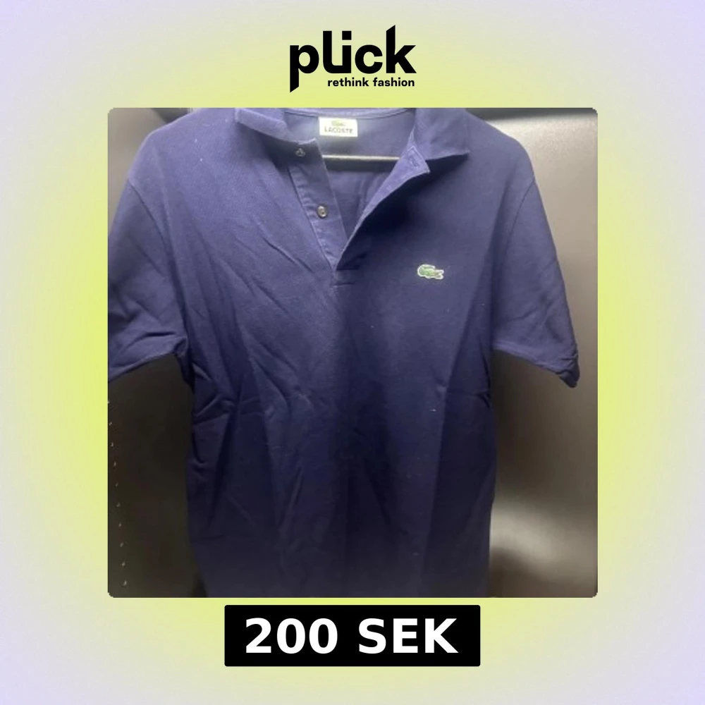 Säljer en klassisk mörkblå pikétröja från Lacoste med den ikoniska gröna krokodilen broderad på bröstet. Tröjan har korta ärmar och en stilren krage med knappar. Perfekt för en avslappnad och stilren look.