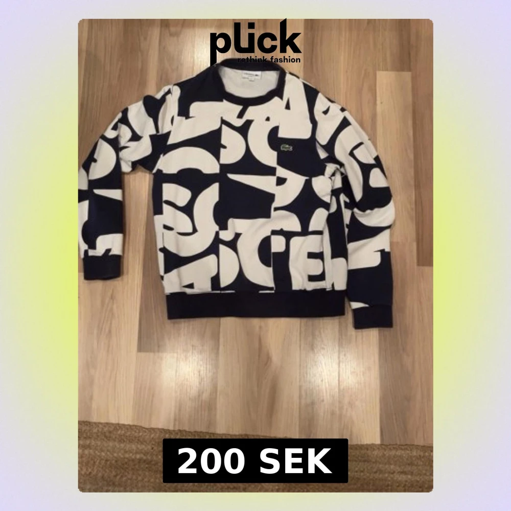 Säljer en riktigt snygg sweatshirt från Lacoste i storlek M. Tröjan har ett stort grafiskt mönster och den klassiska gröna krokodilloggan på bröstet. Skön passform med rund hals och långa ärmar. Perfekt för dig som gillar statement-plagg!