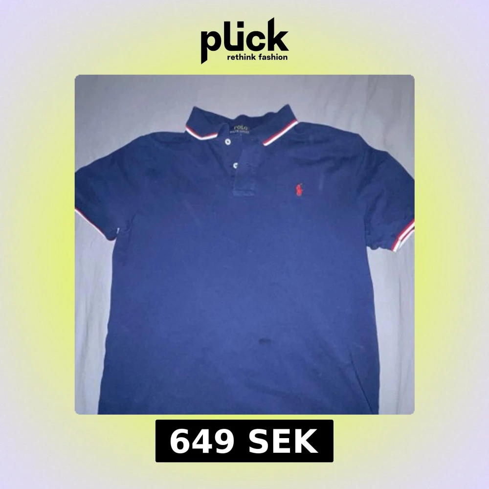 Säljer en klassisk blå pikétröja från Ralph Lauren med röd broderad logga på bröstet. Tröjan har korta ärmar och vita och röda detaljer på krage och ärmslut. Perfekt för en stilren look! Skriv vid frågor! 9/10 skick