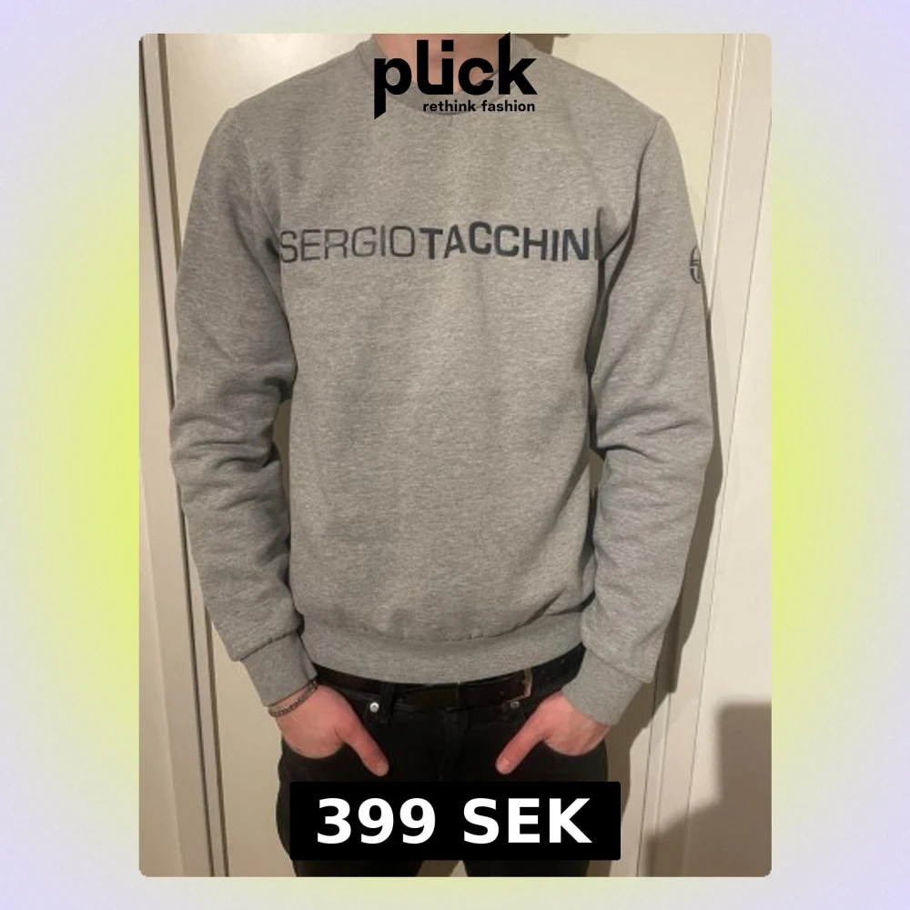 Snygg grå sweatshirt från Sergio Tacchini med stor logga i svart på bröstet och diskret logotyp på ärmen. Tröjan har rund halsringning, ribbade muddar och är tillverkad i mjuk bomullsblandning. Perfekt för en avslappnad och stilren look.