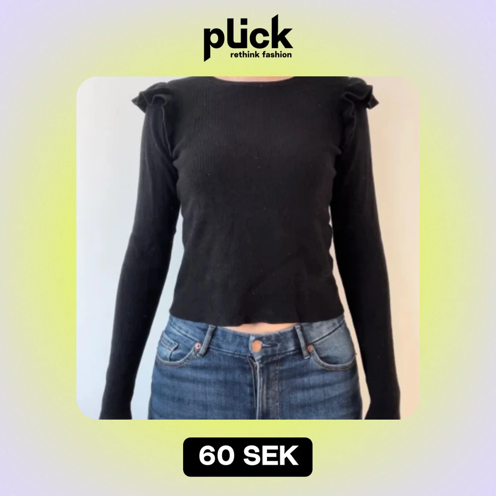 Långärmad tröja med jätte söta volanger vid armarna. Säljer för att jag inte använder lika mycket:(