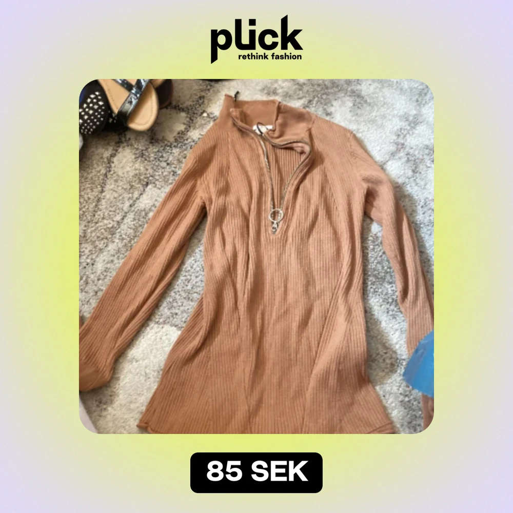 En brun långärmad tröja med dragkedja vid halsen superfin och super stolek s