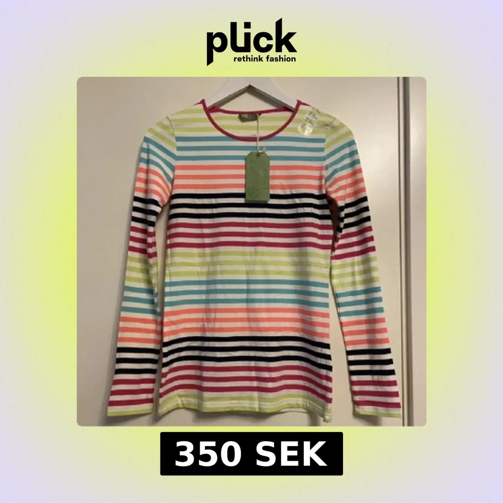 Säljer en helt ny långärmad tröja med glada färger från Lindex. 📏 Storlek: 170 🎨 Randigt mönster i fina, färgglada toner 🎀 Prislappen sitter kvar (utan angivet pris) 💯 Aldrig använd – supersnygg och fräsch! Perfekt för dig som gillar färg och komfort i ett!