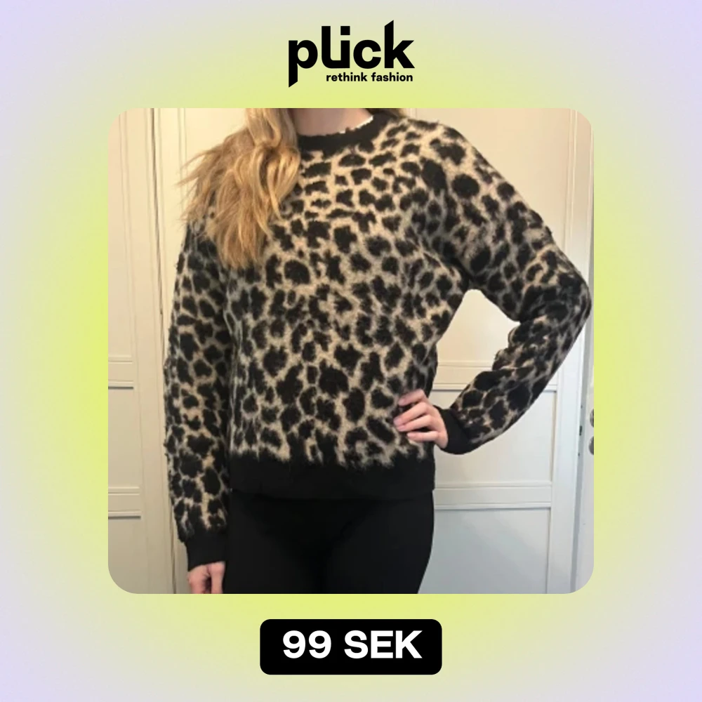 Stickad tröja med leopardmönster från NA-KD 💕. Tröjan har använts flera gånger som man kan se på sista bilden då armen har slitits upp lite. Men inga hål eller fläckar 😊.