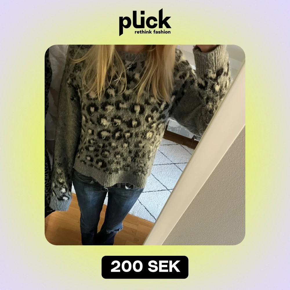Säljer en supermysig grå tröja med leopardmönster. Den är perfekt för höst och vinter. Den är i bra skick