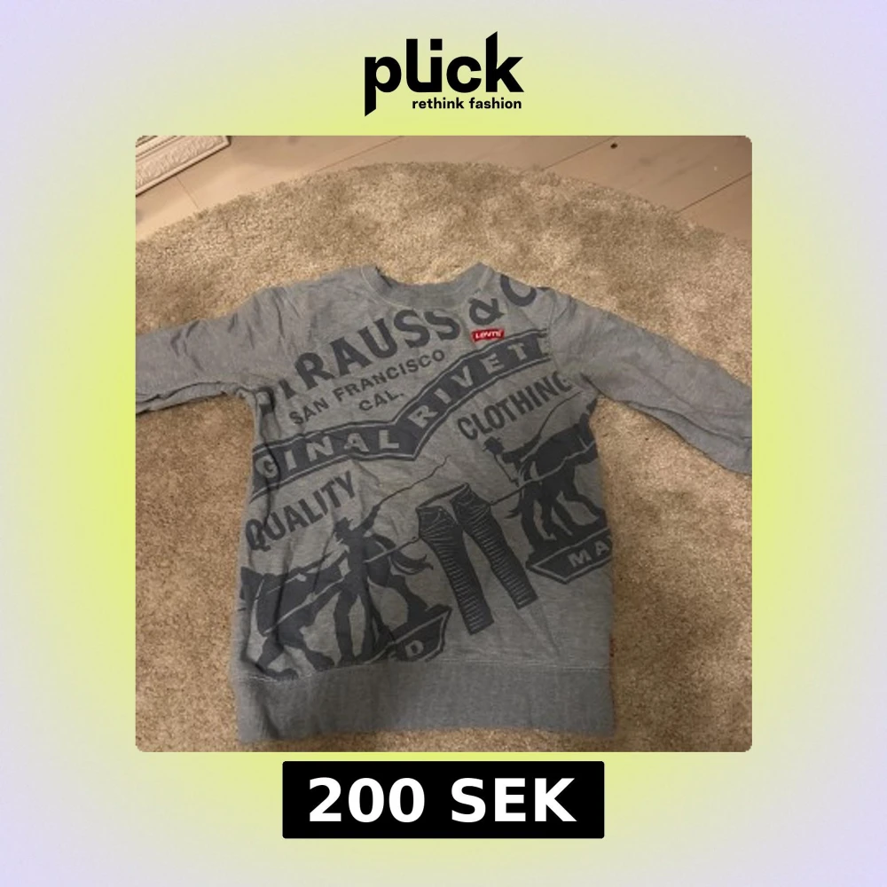 Säljer en grå sweatshirt från Levi's med stort grafiskt tryck på framsidan i mörkgrått. Tröjan har rund halsringning och långa ärmar. Perfekt för dig som gillar streetwear och vill ha något bekvämt och snyggt. Använd men ändå i bra skick