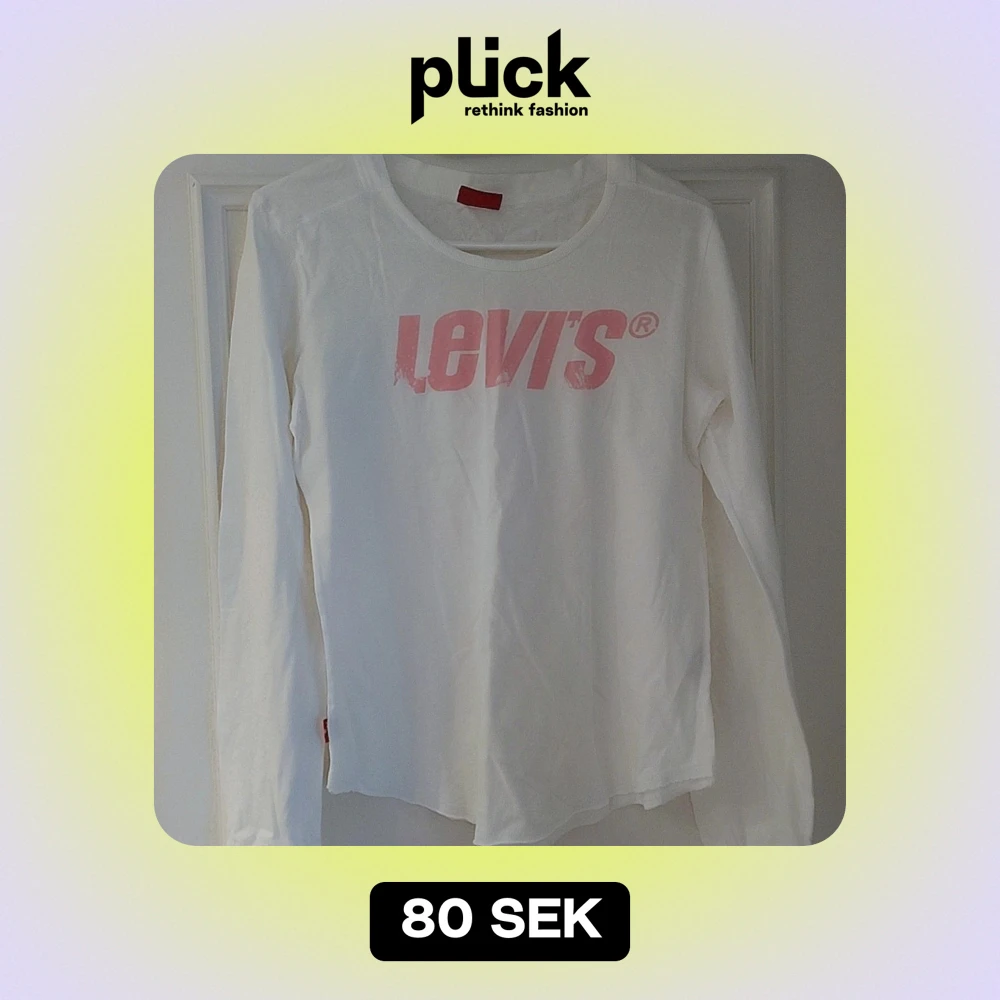Säljer en snygg vit långärmad tröja från Levi's med deras ikoniska logga i rosa på bröstet. Perfekt för en casual look och passar till alla årstider. Tröjan är i bra skick och gjord av mjukt bomullsmaterial. Perfekt för dig som älskar klassiska märken! 💖