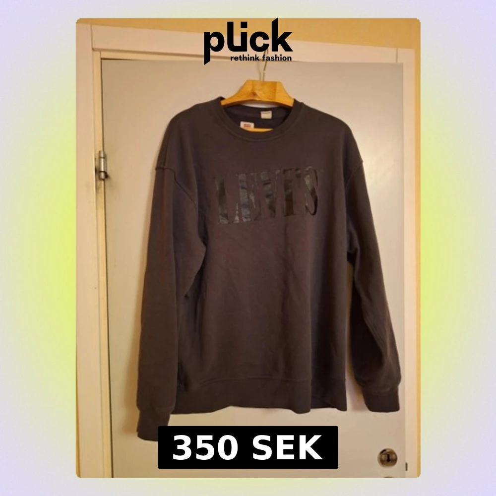 Säljer en mörkgrå sweatshirt från Levi's i relaxed fit. Tröjan har rund halsringning, långa ärmar och en stor svart Levi's-logga framtill. Perfekt för dig som gillar en enkel och stilren look. Materialet är mjukt och skönt, troligtvis bomull.
