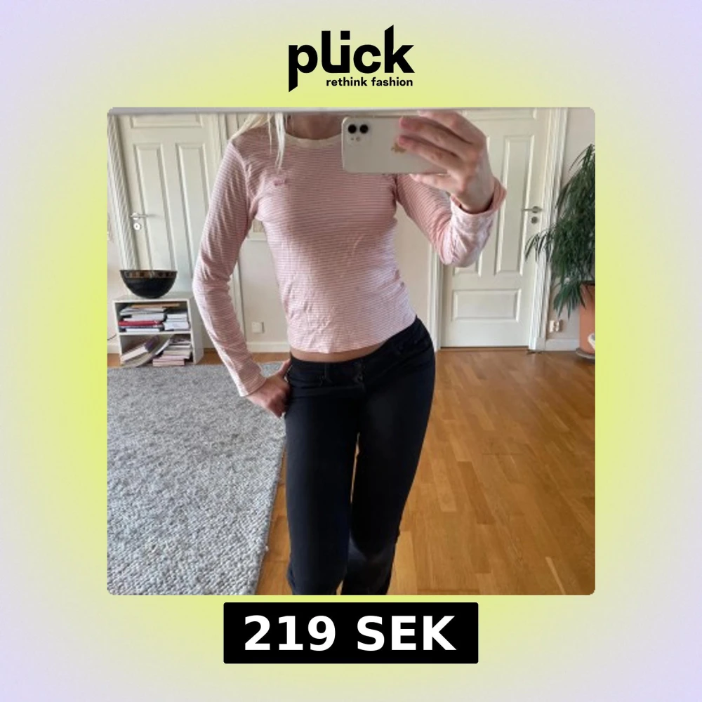 Säljer en söt långärmad tröja från Levi's i ljusrosa och vita ränder. Tröjan har en rund halsringning med vit kant och en liten Levi's-logga på bröstet. Perfekt för dig som gillar en enkel men stilren look.