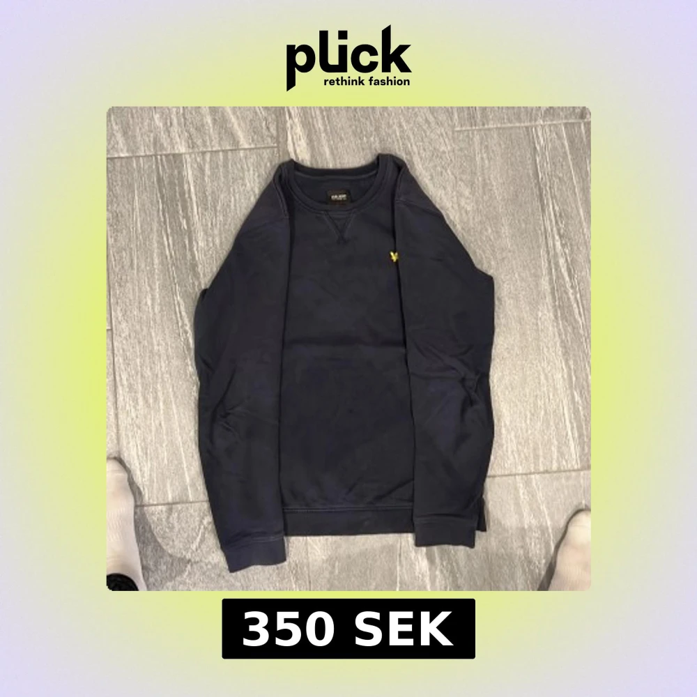 Säljer en stilren mörkblå sweatshirt från Lyle & Scott med klassisk rund hals och det ikoniska gula fågel-loggan broderad på bröstet. Tröjan har långa ärmar och är tillverkad i mjuk bomull, perfekt för en chill och snygg look.