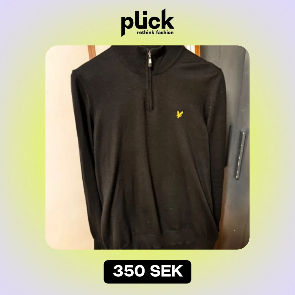 En stilren svart tröja från Lyle & Scott med en liten gul logotyp på bröstet. Tröjan har en dragkedja vid halsen och är långärmad.