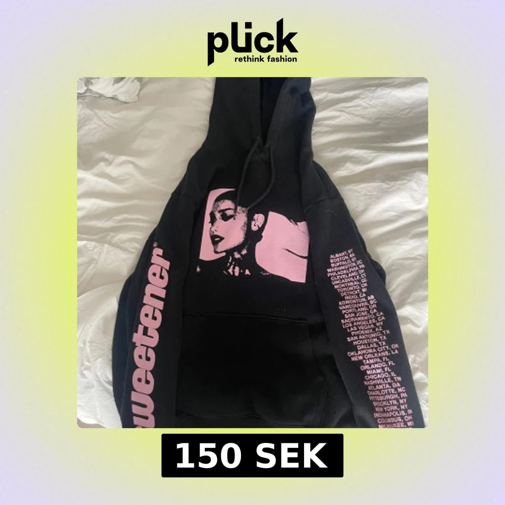 Svart hoodie från H&M Divided med Ariana Grande Sweetener-tryck. Knappt använd.