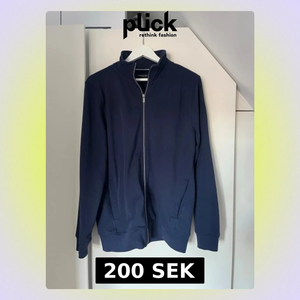 Mörkblå zip tröja som nästan är oanvänd. Storlek S men sitter som en M. Kommer från Lawrence Grey. Modellen är 175 cm
