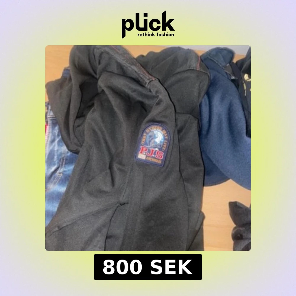 Säljer en svart jacka från PJS med ett snyggt märke på ärmen. Jackan har en stilren design och är perfekt för kyligare väder. Den är tillverkad i ett slitstarkt material och har en bekväm passform.