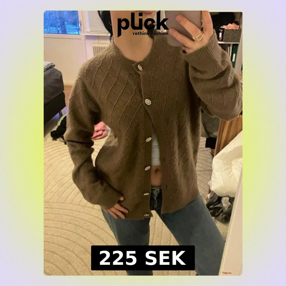 Brun stickad kofta med pärlknappar