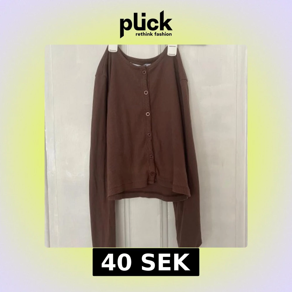 Brun ribbad kofta från 157 i storlek M. Tröjan har långa ärmar, knappar framtill och är croppad i modellen. Perfekt att styla med jeans eller kjol för en avslappnad look.
