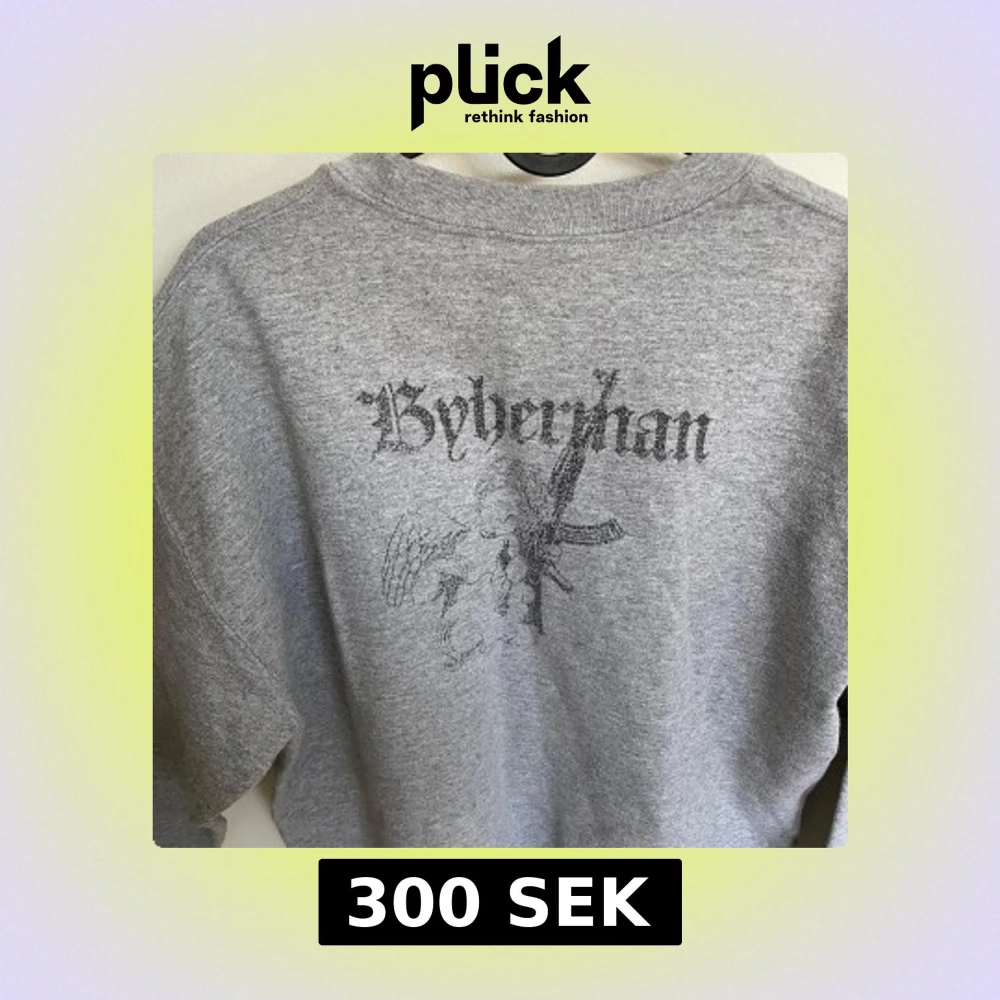 Säljer en grå sweatshirt med ett unikt tryck på framsidan. Tröjan är tillverkad i en mjuk bomullsblandning och har en avslappnad passform. Perfekt för en casual look.