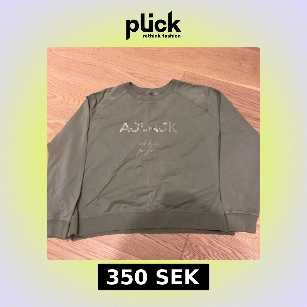 Olivgrön sweatshirt från Ajlajk med metallictryck framtill. Tröjan har rund halsringning, långa ärmar och ribbade muddar vid ärmslut och nederkant. Perfekt för en chill och avslappnad stil.