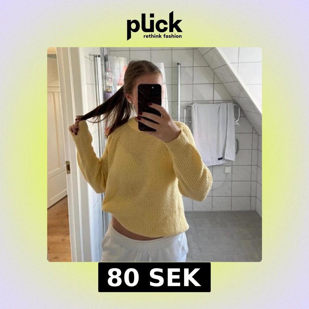 Fin ljusgul stickad tröja med rundad hals. Säljer för att den inte kommer till användning tyvärr💛