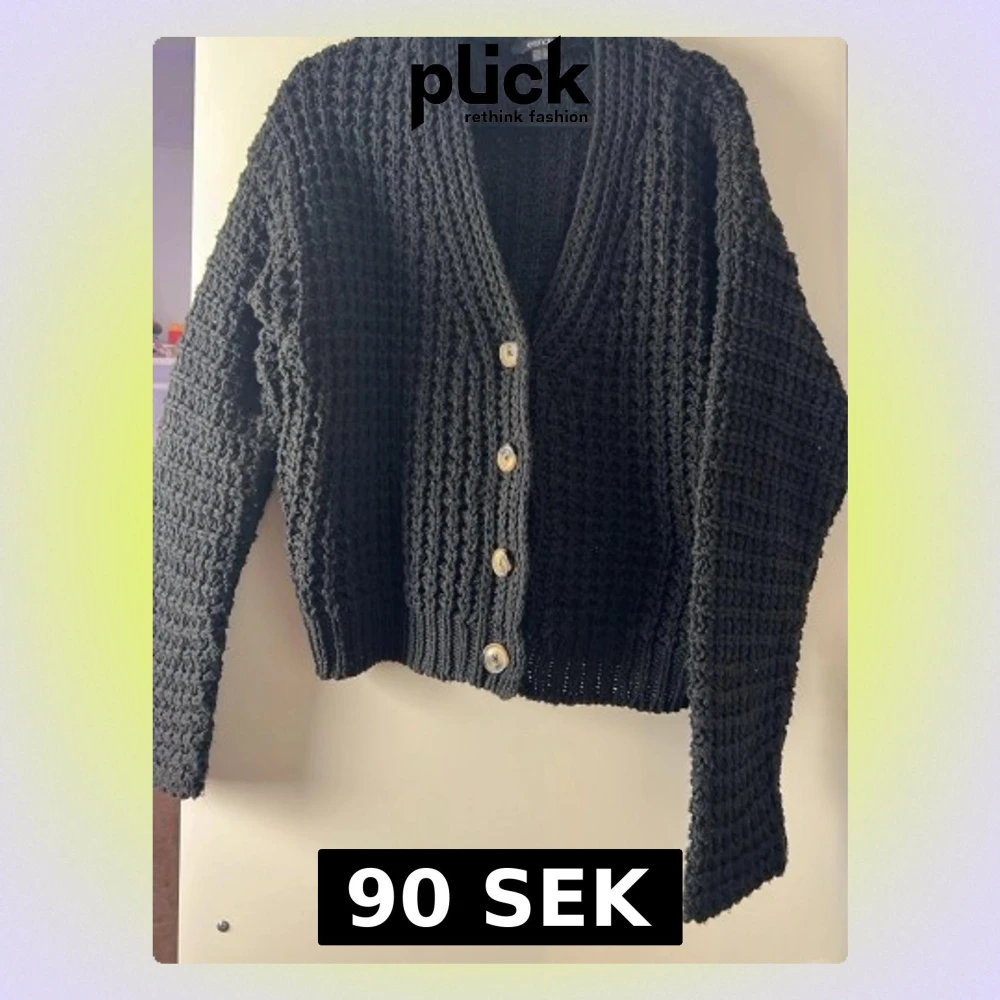 Svart stickad kofta från Esmara med beiga knappar
