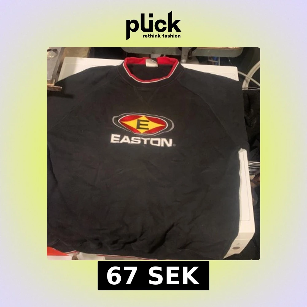 Cool svart sweatshirt från Easton med stor broderad logga i gult, rött och vitt på bröstet. Tröjan har rund hals med röd och vit kant samt ribbade muddar. Perfekt för dig som gillar sportig stil och vill sticka ut lite extra.