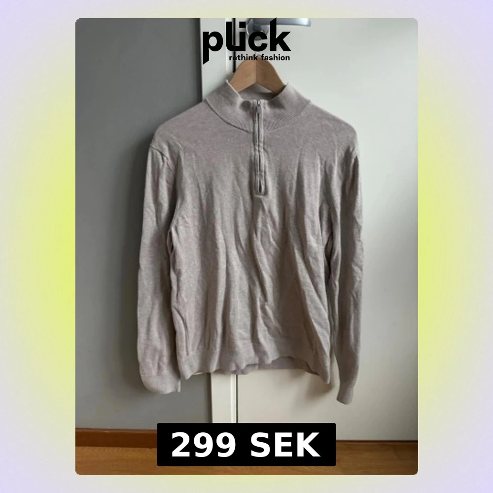 Bläck Quarter zip, beige. Är i jättebra skick bara att den ser skrynklig ut på bilderna för att den inte är använd. Storlek M. Öppen för bud ✅ Skickar inom 24h
