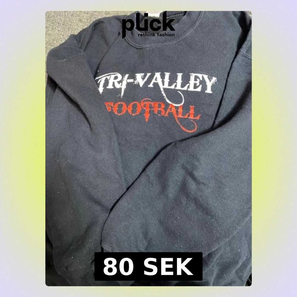 Svart sweatshirt från Gildan med trycket 'Tri-Valley Football' i vitt och rött på bröstet. Tröjan är i modellen Heavy Blend och har rund hals samt långa ärmar. Materialet är en blandning av bomull och polyester, vilket gör den mjuk och skön.