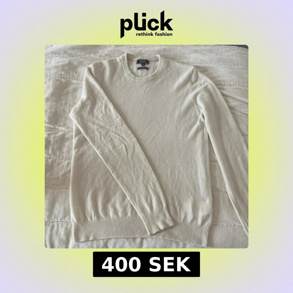 Säljer en elegant vit kashmirtröja från Galeries Lafayette. Tröjan har en klassisk design med rund hals och långa ärmar. Perfekt för en stilren och bekväm look.