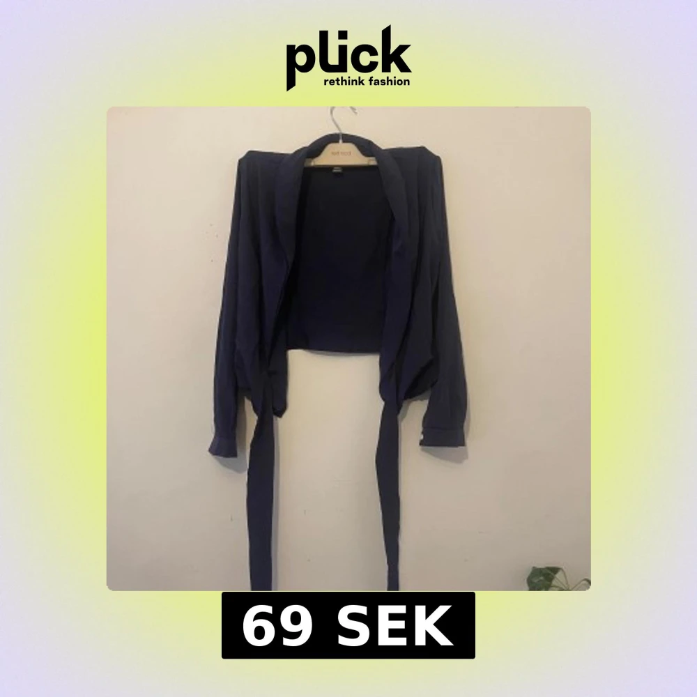 Snygg mörkblå omlottkofta med långa ärmar och knytband i midjan. Koftan har klassisk krage och knappar vid ärmsluten, perfekt för lager-på-lager och en stilren look. Går även att knyta på olika sätt. Aldrig använt.