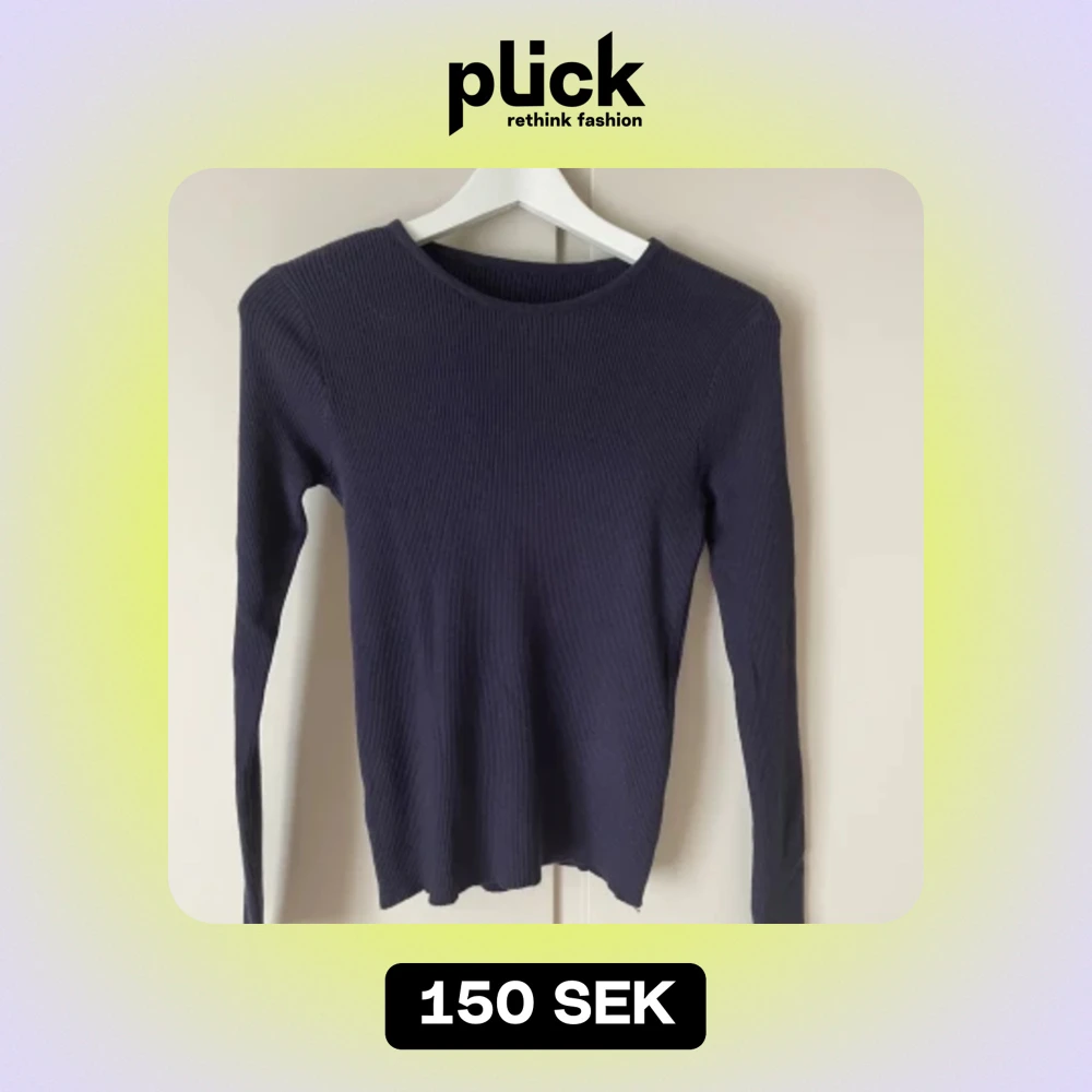 Ribbad marinblå tröja i storlek S men är stretchig så passar även M, har aldrig använt den så den är i nyskick, lite tjockare i materialet. Hör av dig vid frågor eller annat💕