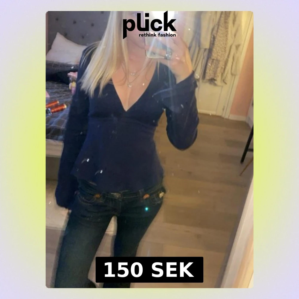 Super gullig tröja som är marinblå och V-ringad, man knyter den så det är en rosett bakom men har tyvärr ingen bild på det💕
