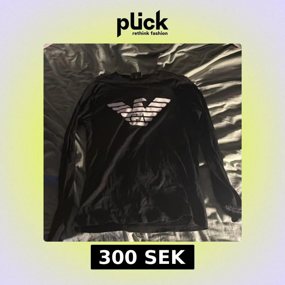 Snygg svart långärmad tröja från Emporio Armani med det ikoniska logotyptrycket på framsidan. Perfekt för en stilren look.