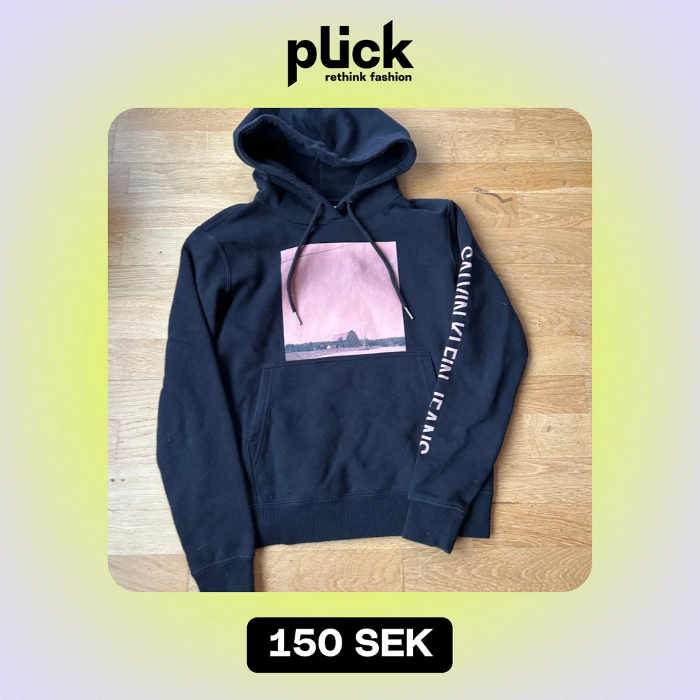 Säljer en snygg svart hoodie från Calvin Klein Jeans i storlek XS. Den har en cool rosa bild på framsidan och text på ärmen. Använd några gånger innan jag växte ur den så i mycket bra skick. 🖤