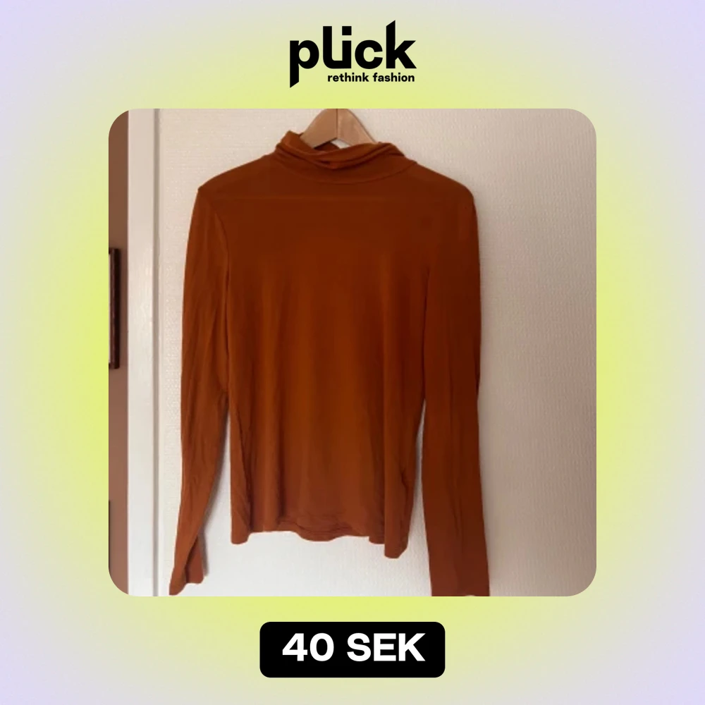 En orange-brun, mjuk, tunn, polotröja. Fint skick 💓 stl L men är väldigt stretchig.