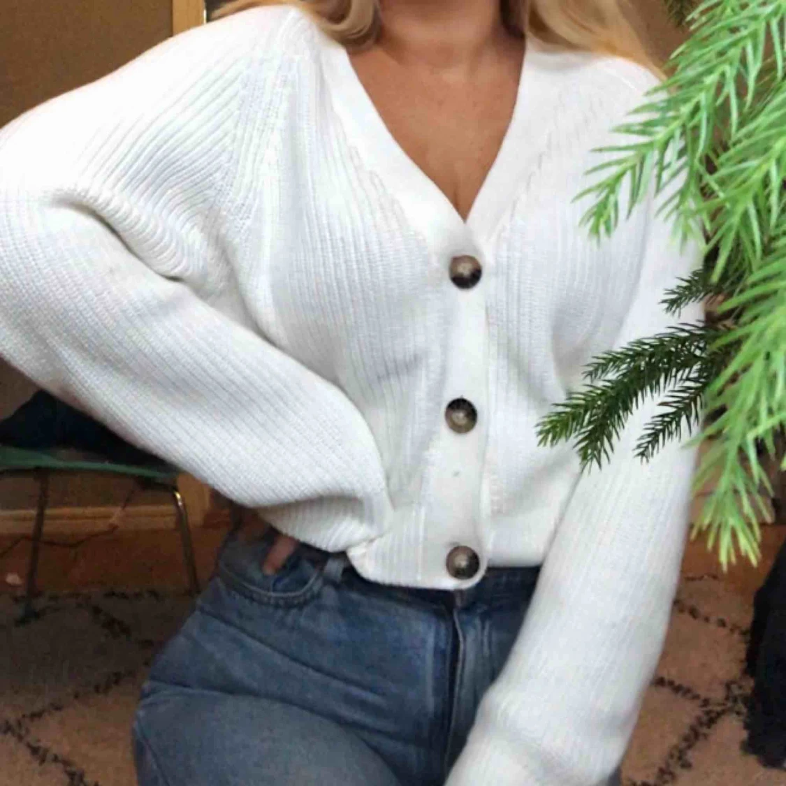 Trendig stickad tröja med knappar✨ Den är i storlek xxs men passar bra på mig som brukar ha s. Beror såklart på hur man vill att den ska sitta🌷 frakt tillkommer!