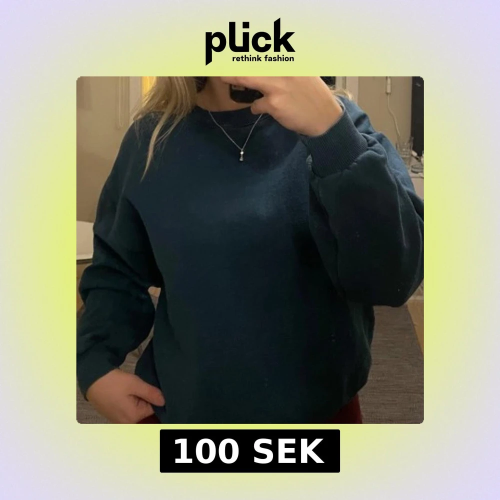 Säljer en mörkblå tröja med långa ärmar och ribbade muddar!